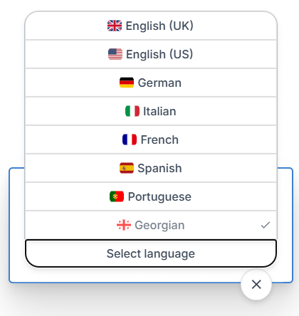 Remember, you can switch anytime between Georgian, English, or the five other major European languages using the language dropdown menu in the Editor.