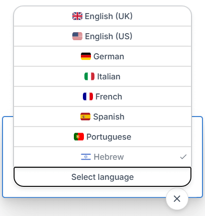 Remember, you can switch anytime between Hebrew, English, or the five other major European languages using the language dropdown menu in the Editor.
