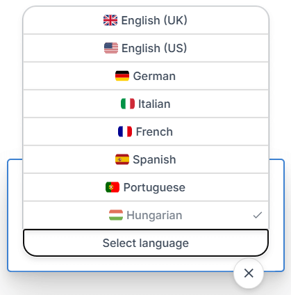 Remember, you can switch anytime between Hungarian, English, or the five other major European languages using the language dropdown menu in the Editor.