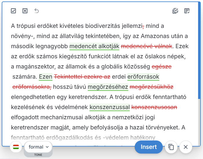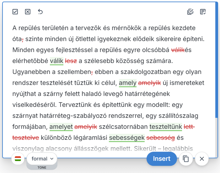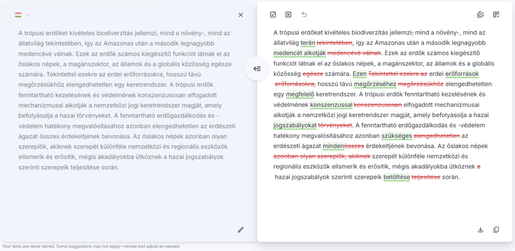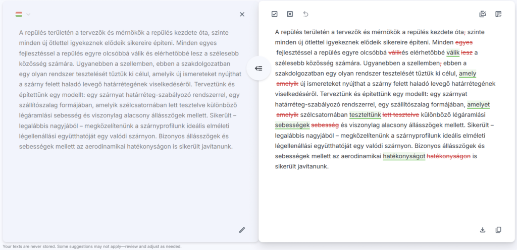 Our English editing remains our flagship, most advanced and professional-grade service, refined through years of data training. Meanwhile, we’re continuously improving our Hungarian language support to provide even better editing suggestions over time.