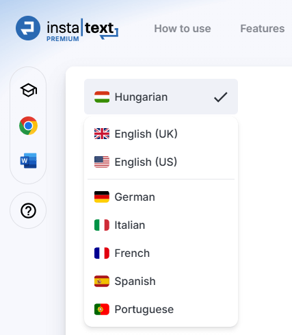Ready to experience InstaText’s Hungarian support? Sign up or log in at instatext.io and select Hungarian in the Editor to see how InstaText can elevate your writing.