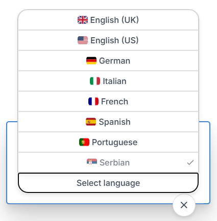 Remember, you can switch anytime between Serbian, English, or the five other major European languages using the language dropdown menu in the Editor.