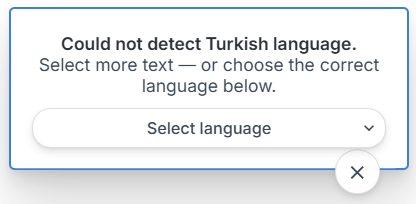 Remember, you can switch anytime between Turkish, English, or the five other major European languages using the language dropdown menu in the Editor.